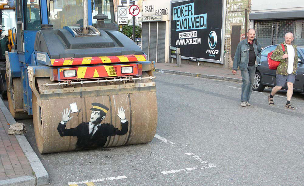 A well-placed street piece will reveal the meaning of its material context, making the invisible visible again, a city re-imaged and re-imagined. A street work can be an intervention, a collaboration, a commentary, a dialogic critique, an individual or collective manifesto, an assertion of existence, aesthetic therapy for the dysaesthetics of urban controlled, commercialized visibility, and a Whitmanian hymn with the raw energy of pent-up democratic desires for expression and self-assertion. Whatever the medium and motives of the work, the city is the assumed interlocutor, framework, and essential precondition for making the artwork work.