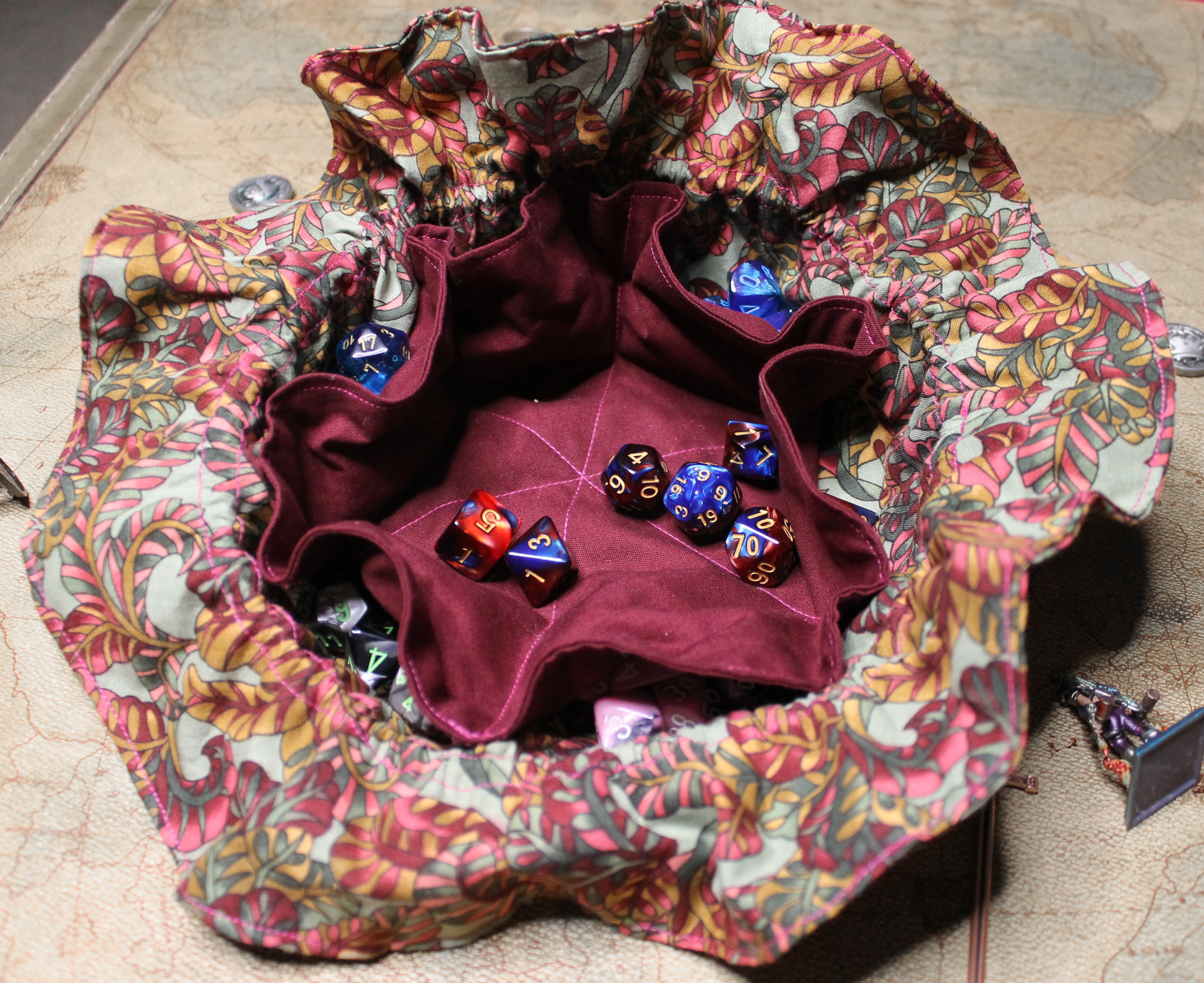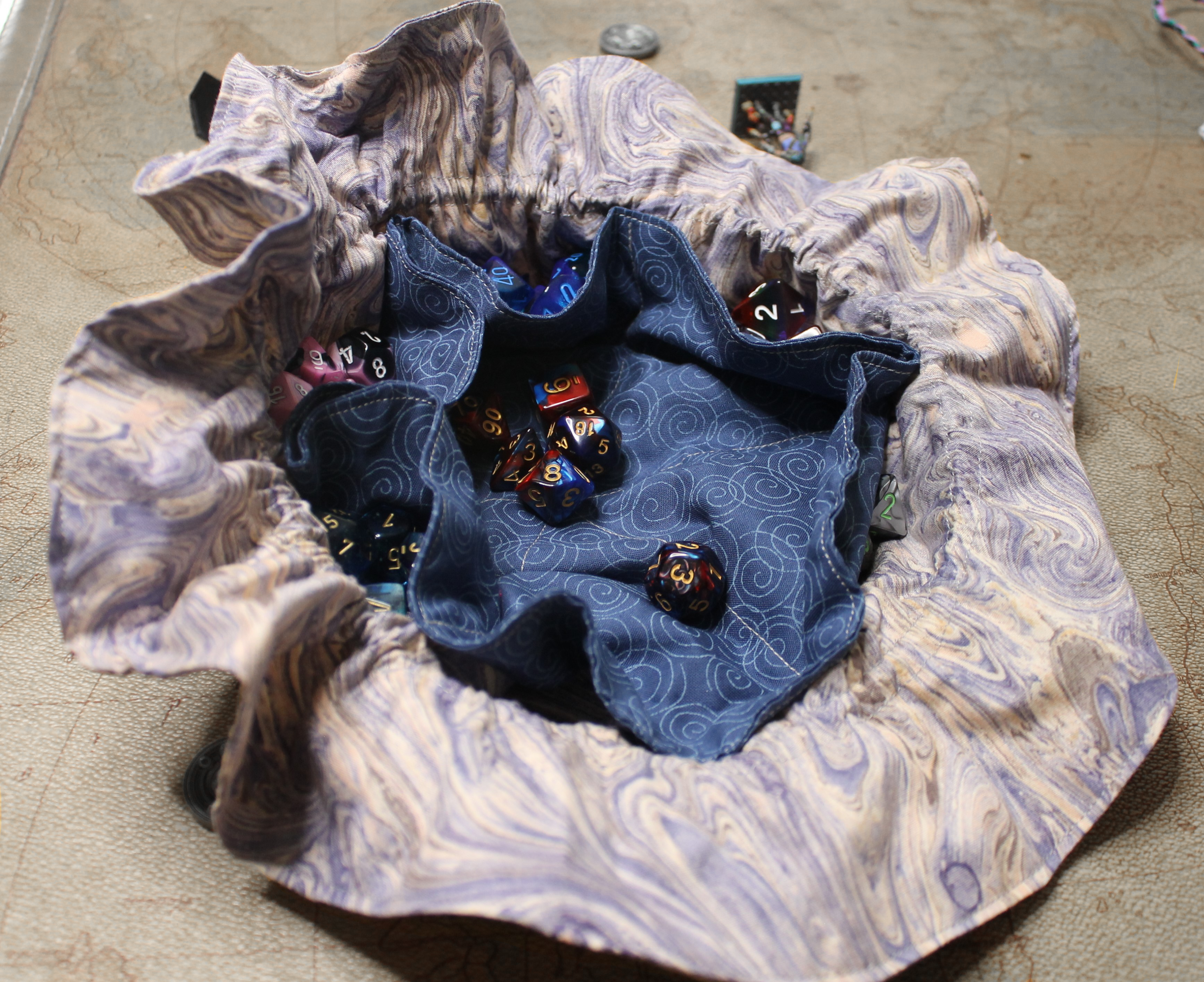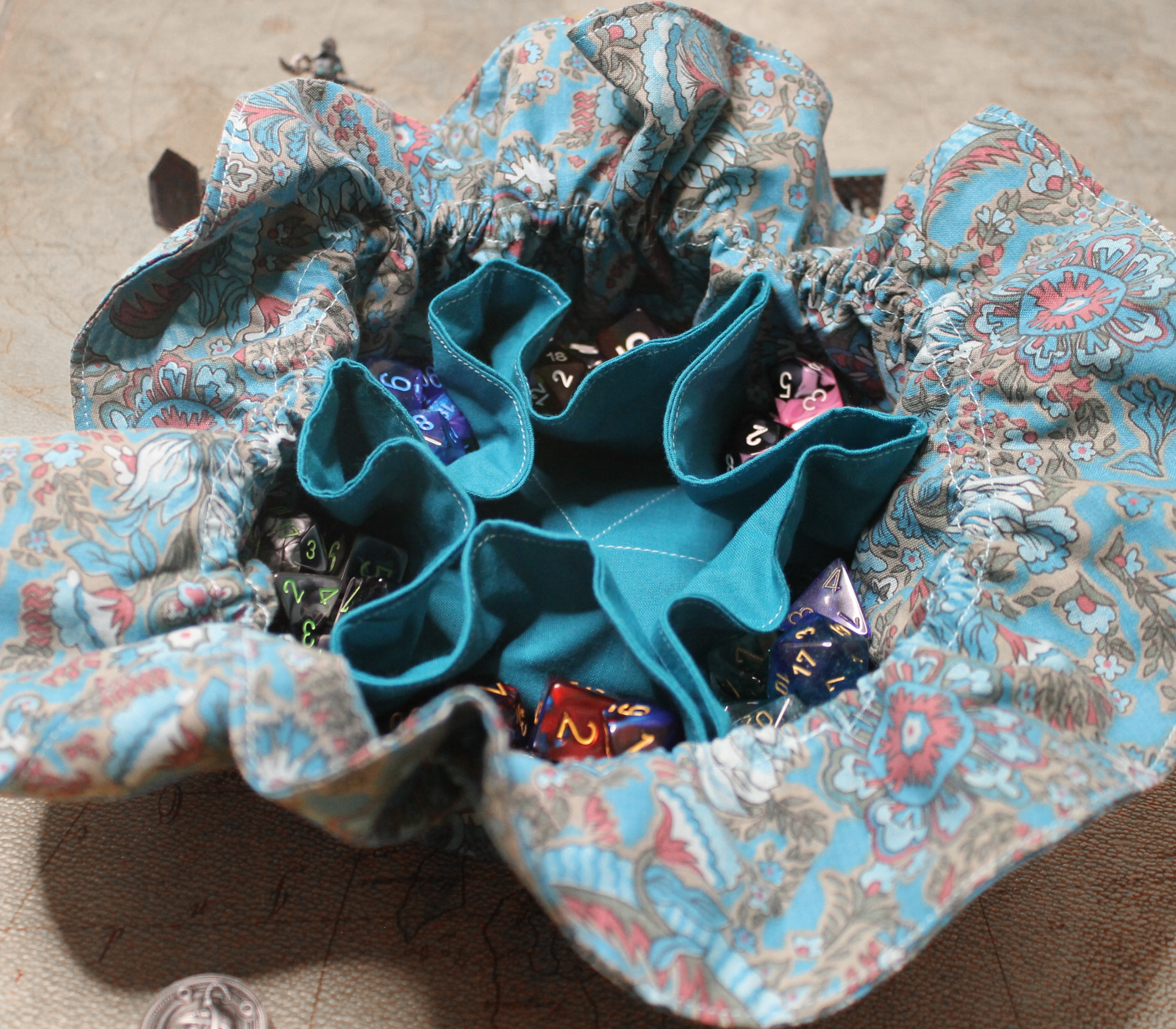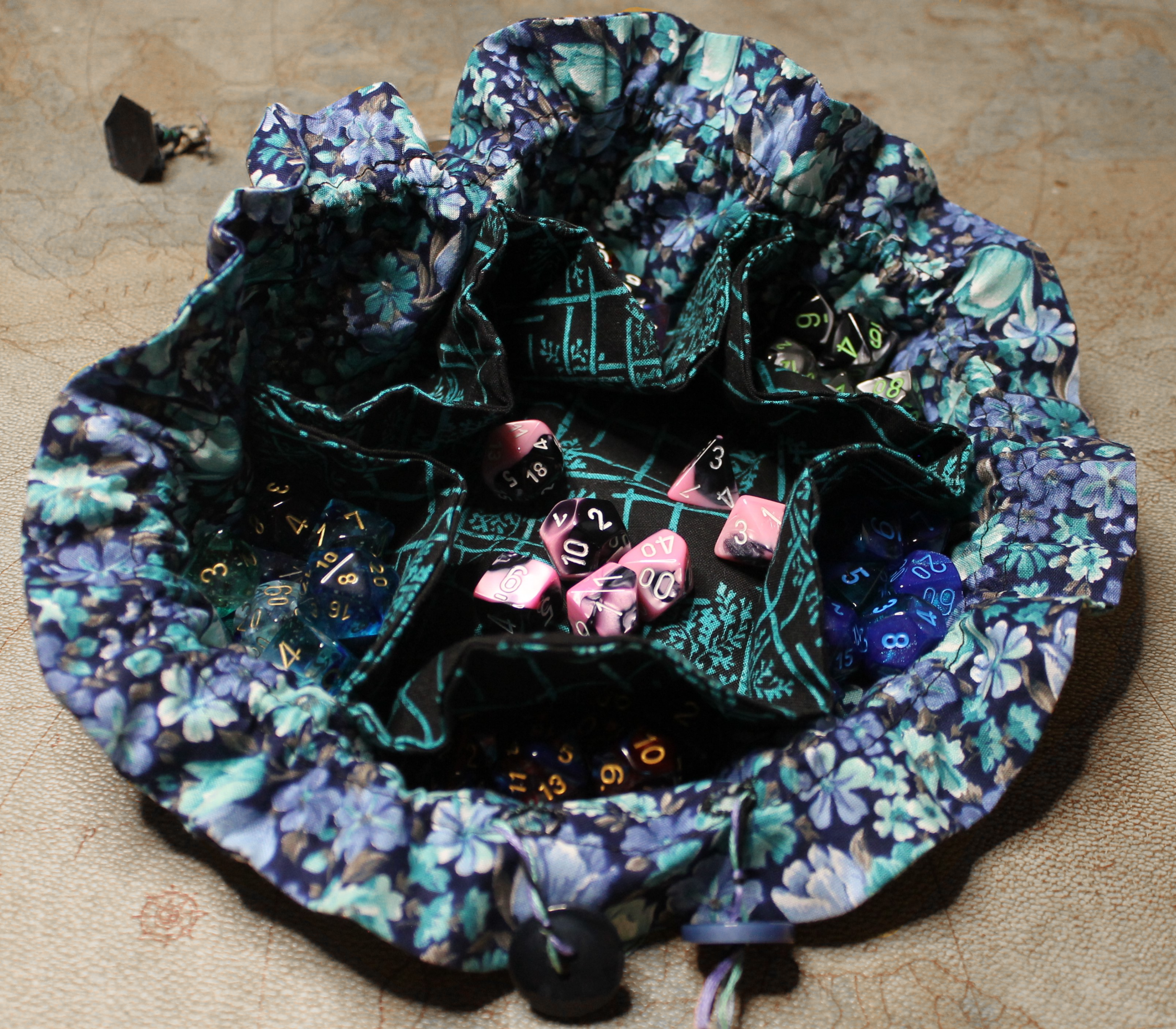 Looking for something a little simplier and more affordable? Multi-pocket dice bags are a great option! Every bag is hand-crafted with care and features two different distinct fabric patterns expertly sewn together creating a beautifully unique accessory. Each bag also contains a drawstring that is hand woven to improve its strength and durability while giving it an eye-catching look. Whether you're a seasoned gamer or just starting out, these stylish and functional dice bags are a fun accessory for any tabletop adventure.